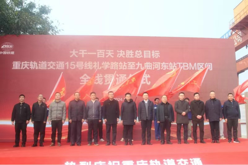 2024年12月27日上午,重慶軌道交通15號(hào)線(xiàn)二期最后一個(gè)TBM區(qū)間歡樂(lè)谷站至九曲河?xùn)|站右線(xiàn)順利貫通。此時(shí),重慶軌道交通15號(hào)線(xiàn)禮學(xué)路站至九曲河?xùn)|站TBM 區(qū)間全線(xiàn)貫通儀式在禮學(xué)路站隆重舉行,出席儀式的有重慶市鐵路集團(tuán)建設(shè)管理部、15號(hào)線(xiàn)二期四包項(xiàng)目部、重慶市勘察院公司、中鐵第四勘察設(shè)計(jì)院集團(tuán)公司、中鐵華鐵工程設(shè)計(jì)集團(tuán)海南分公司、北京中昌工程咨詢(xún)有限公司、中鐵建重慶投資集團(tuán)、中鐵建重慶軌道交通15號(hào)線(xiàn)總承包部、中鐵十一局集團(tuán)安全生產(chǎn)監(jiān)管中心、中鐵十一局集團(tuán)五公司等單位相關(guān)領(lǐng)導(dǎo)。