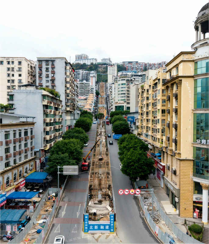 “本次澆筑的樁基位于巫山縣尚熙臺處,此處巫山縣交通樞紐地帶,車流、人流加上施工難度,給現(xiàn)場作業(yè)帶來了很大困擾。”該項目副主任工程師瞿政紅介紹道,為確保將施工影響降至最低,項目部采用占道施工時間最短的旋挖鉆成孔方式施工,從圍擋搭設、路面保護措施施工、旋挖機進場、樁基鉆進、樁基成孔、鋼筋籠安裝、樁基混凝土澆筑等,晝夜施工不停歇,僅用1天時間完成所有工序。