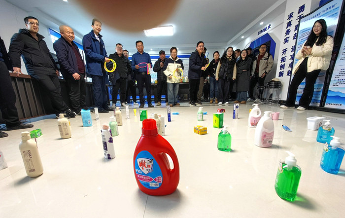 下午3點半,套圈有獎游戲正式開始,工作人員將洗發(fā)水、牙膏、洗衣液、護(hù)發(fā)素、護(hù)手霜等獎品擺放在地面上,將塑料圈發(fā)給參加套圈的員工,套住哪個獎品,由專人把獎品發(fā)給本人。這項活動吸引了從班子成員到普通員工幾十人參加,現(xiàn)場歡聲笑語、喝彩聲不斷,氣氛熱烈。技術(shù)高、手氣好的員工,5個圈能套住3個獎品,得到獎品,笑得合不攏嘴,套不住獎品的員工也不遺憾。