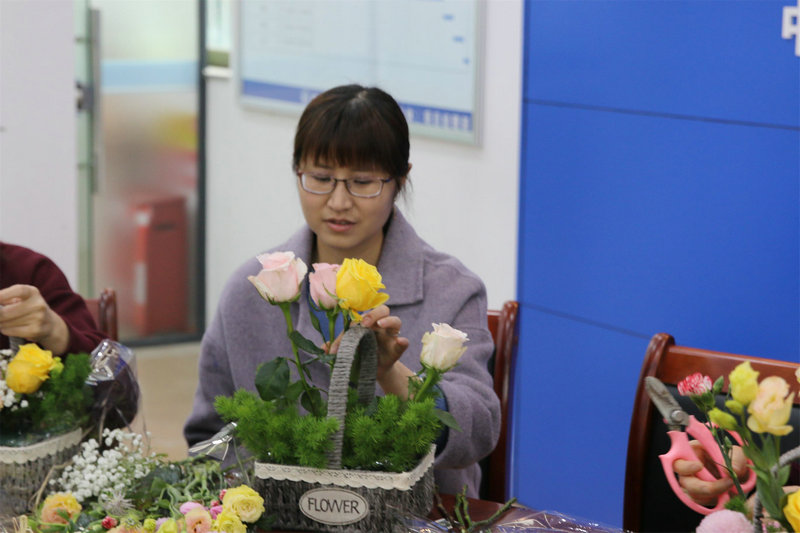 會后,陳利紅助理和在座的女職工一同參與了花藝沙龍活動,活動大家聚精會神、巧手翻飛在一片歡聲笑語中,一籃籃錯落有致,賞心悅目的藝術(shù)品展示在大家面前,為節(jié)日增添一道亮麗的風(fēng)景線。