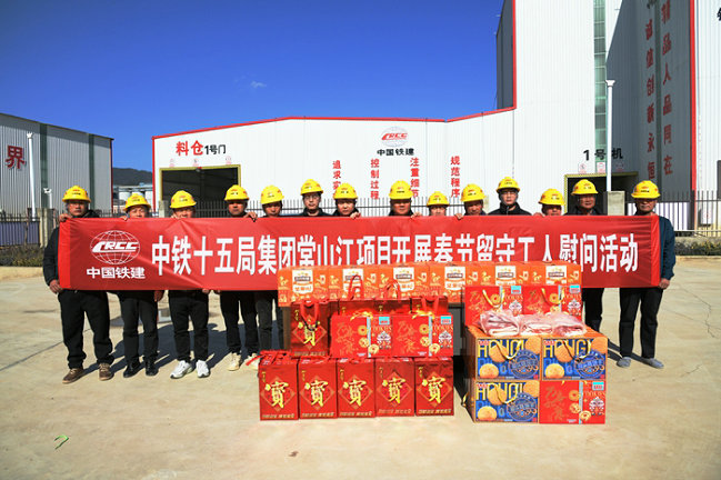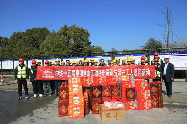 鐵路工程建設(shè)網(wǎng)訊 春節(jié)前夕,中鐵十五局常山江航電樞紐項(xiàng)目部為春節(jié)堅(jiān)守崗位照常施工的90多位農(nóng)民工送去“三件套”慰問品和新春的祝福,讓他們心滿意足地過(guò)年。