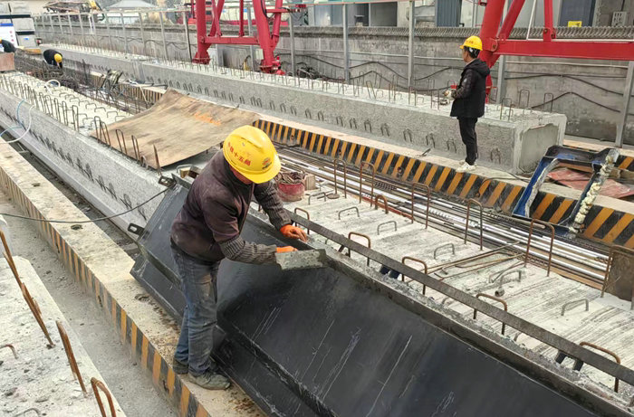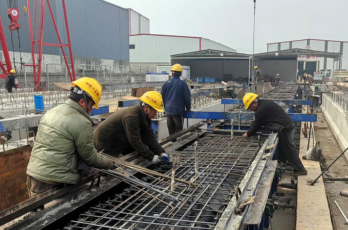 該梁場生產(chǎn)的空心板梁滿足4座樞紐架梁需要之后,將開始生產(chǎn)預(yù)應(yīng)力T梁,為后期4座橋架梁做好儲備。