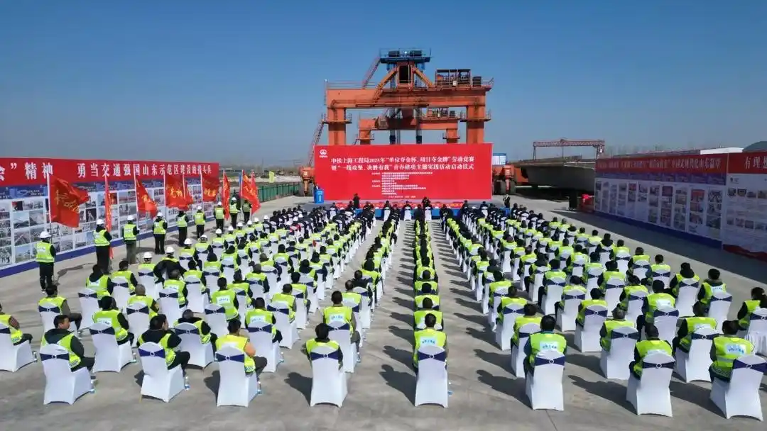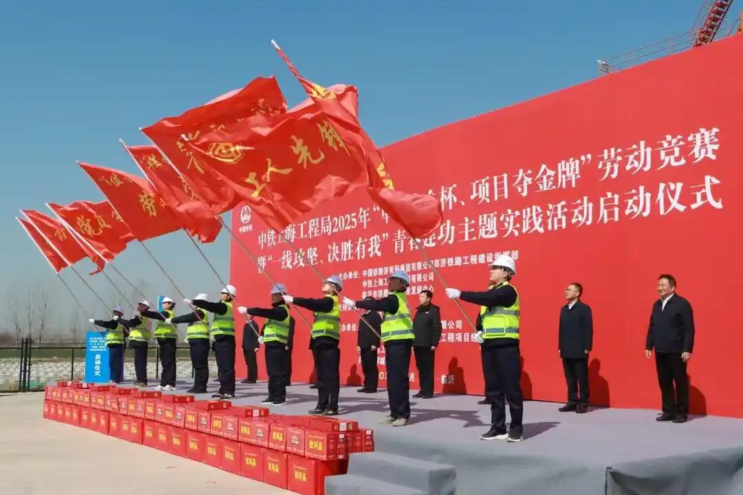 3月19日,中鐵上海工程局2025年“單位奪金杯、項(xiàng)目奪金牌”勞動(dòng)競(jìng)賽暨“一線攻堅(jiān)、決勝有我”青春建功主題實(shí)踐活動(dòng)啟動(dòng)儀式,在濰坊至宿遷高鐵十標(biāo)郯城制梁場(chǎng)施工現(xiàn)場(chǎng)成功舉辦。