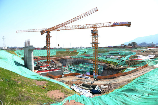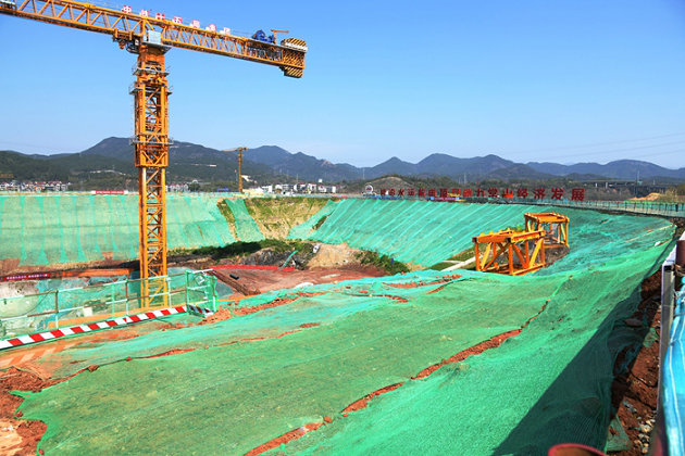 隨后,人大代表們沿著一條硬化過(guò)的便道,邊走邊觀(guān)看大型拌合中心建筑和粘貼在房屋上宣傳中國(guó)鐵建企業(yè)理念和價(jià)值觀(guān)的大幅字帖標(biāo)語(yǔ);觀(guān)看一個(gè)巨大的深坑內(nèi)正在建設(shè)的招賢發(fā)電站廠(chǎng)房、進(jìn)水口、集水井、兩臺(tái)運(yùn)轉(zhuǎn)的塔吊、被綠網(wǎng)覆蓋的棄渣、高圍堰護(hù)坡,以及整齊排列著的泄洪閘9個(gè)內(nèi)實(shí)外美的閘墩和大吊車(chē)架設(shè)空心板梁的場(chǎng)景。他們被火熱的施工現(xiàn)場(chǎng)深深地吸引,對(duì)四處被綠網(wǎng)覆蓋、避免揚(yáng)塵的建筑工地產(chǎn)生濃厚的興趣,紛紛舉起手機(jī)拍照,將這個(gè)規(guī)模宏大的水利工程定格下來(lái)留作紀(jì)念或者作為資料保存。一位人大代表深有感觸說(shuō):“觀(guān)摩了常山江項(xiàng)目,感覺(jué)施工現(xiàn)場(chǎng)管理很規(guī)范,中鐵十五局不愧是大型央企。”