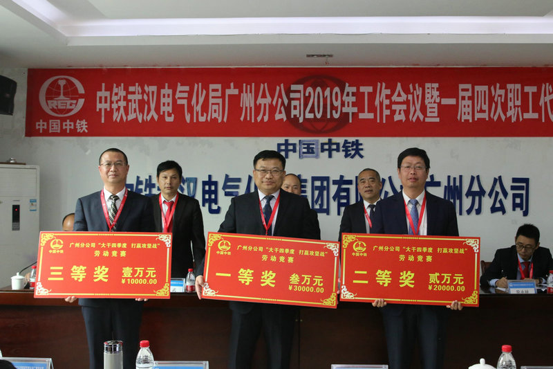 16日下午,中鐵武漢電氣化局廣州分公司2019年工作會(huì)暨一屆四次職工代表大會(huì)在中國(guó)中鐵司歌《開路先鋒》歌聲中勝利閉幕。