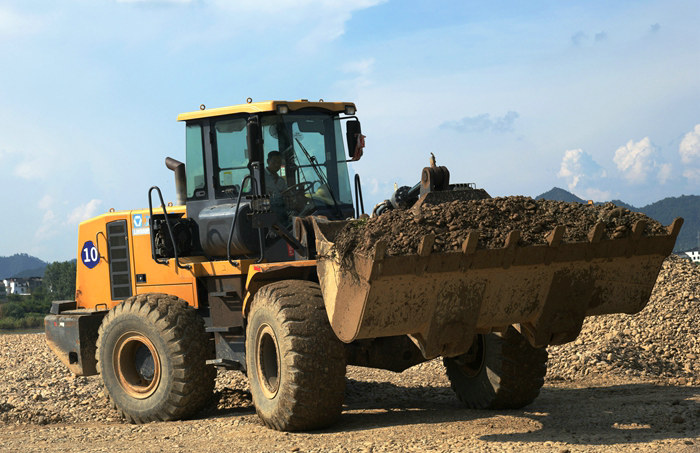 鏟車往電站圍堰運輸泥沙石 郝偉亮攝