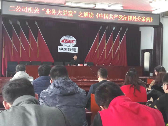 “山西省某縣縣委書記探頭對(duì)準(zhǔn)舉報(bào)箱,干擾巡視被嚴(yán)處。該行為影響了干部群眾依法行使檢舉權(quán),干擾了巡視工作的正常開展,嚴(yán)重違反了黨的政治紀(jì)律和政治規(guī)矩,受到了嚴(yán)肅處理……”3月15日下午,在中鐵二十三局集團(tuán)二公司機(jī)關(guān)“業(yè)務(wù)大講堂”上,公司紀(jì)委書記林存庫用全國和身邊的實(shí)際案例生動(dòng)地解讀了《中國共產(chǎn)黨紀(jì)律處分條例》,使機(jī)關(guān)黨員干部進(jìn)一步樹立了規(guī)矩意識(shí),明確了底線、紅線、高壓線。