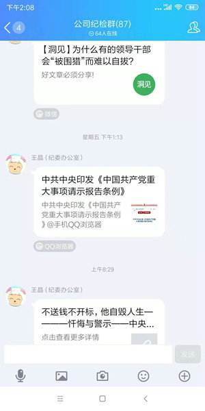 兼職人員誦好“三日經(jīng)”。為加強(qiáng)所屬各單位專兼職紀(jì)檢監(jiān)察人員的教育和培訓(xùn),利用qq群和微信群發(fā)送學(xué)習(xí)內(nèi)容、上傳廉政規(guī)定、提出廉潔要求、上好廉政黨課、加強(qiáng)廉潔教育。每三日發(fā)送一次,現(xiàn)已發(fā)送131期。各單位紀(jì)檢監(jiān)察員在誦好“三日經(jīng)”的同時(shí),還將內(nèi)容及時(shí)轉(zhuǎn)發(fā)到本單位qq群和微信群中,讓全體黨員群眾認(rèn)真學(xué)習(xí)有關(guān)規(guī)定和廉潔知識(shí),做到了“手機(jī)在手,廉潔警示教育隨時(shí)有”。