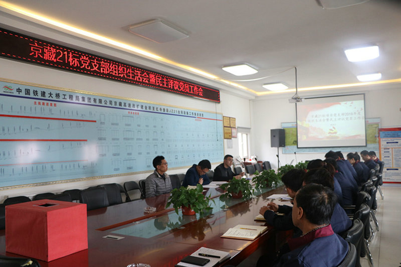 3月19日下午,中鐵建大橋工程局集團西北公司京藏21標(biāo)召開2018年度黨支部組織生活會。項目黨建工作聯(lián)系點領(lǐng)導(dǎo)、公司副總經(jīng)理姜喜東,黨群工作部部長史少龍,紀(jì)檢監(jiān)察部部長、團委書記高健華到會督導(dǎo),會議由項目黨支部副書記劉德舉主持召開。