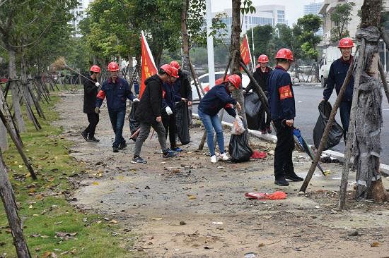 圖四、福州二環(huán)項(xiàng)目部清掃街道、花園衛(wèi)生