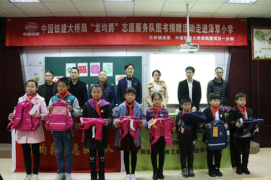 圖五、福廈鐵路項(xiàng)目到促進(jìn)村澤覃小學(xué)捐贈(zèng)圖書(shū)和學(xué)習(xí)用品
