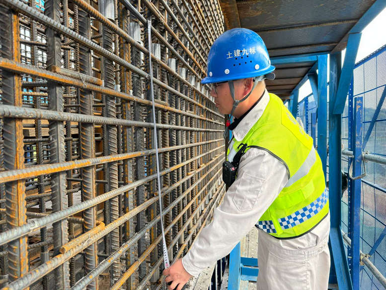 面對這個“硬骨頭”,張玉超沒有退縮。項目部對部分樁基工藝調整為“人工挖孔”工藝。這個決定意味著要投入更多人力,且施工風險大幅增加——垂直深孔作業(yè)中,吊運廢渣、氣體檢測、安全防護每一環(huán)都容不得半點馬虎。那段時間,每天上班就戴著安全帽到井孔旁,盯著工人系好安全帶、檢查起重設備和通風設備是否正常,每隔兩小時就親自查看氣體檢測數(shù)據(jù)。“巖層硬,咱們的辦法就得更‘軟’,得順著它的性子來。”他一邊指揮工人調整護壁支撐,一邊耐心講解操作要點。