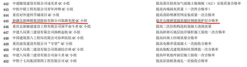 烏魯木齊訊(通訊員 雒煥鼎)近日,重慶市建筑業(yè)協(xié)會(huì)公布2024年度工程建設(shè)優(yōu)秀質(zhì)量管理小組競(jìng)賽活動(dòng)結(jié)果,北新投資公司重慶雙錢(qián)高速土建二標(biāo)段QC小組憑借《提升公路橋梁圓形墩柱鋼筋保護(hù)層合格率》課題從千余項(xiàng)申報(bào)成果中脫穎而出,榮獲Ⅱ類(lèi)成果獎(jiǎng)。