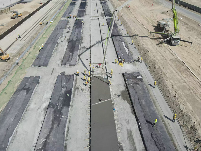 2024年10月項目正式開工,項目團隊跑步進場,精準施策,按下施工“快進鍵”,將施工計劃細化到日、責任落實到人。管理人員全程動態(tài)監(jiān)控,通過實時數(shù)據(jù)反饋及時調(diào)整資源配置,實現(xiàn)多工序交叉作業(yè)無縫銜接;關鍵節(jié)點實行技術人員24小時輪班值守,確保施工“零延誤”。同時,聯(lián)合總包、監(jiān)理單位建立周協(xié)調(diào)機制,高效破解施工堵點,為工期提前注入強勁動能。為確保工程質,項目部構建“全鏈條”管理體系,從原材料進場檢驗到成品驗收,嚴格執(zhí)行標準化流程,現(xiàn)場管理人員全程旁站監(jiān)督,確保每道工序質量達標。為確保施工安全,項目部建立雙重預防機制,制定完善的安全制度與應急預案,布設全覆蓋警示標識,配備專職安全員巡查,定期開展安全培訓與應急演練,全方位保障施工安全。塔里木乙烯鐵路專用線無土化施工節(jié)點的提前完成,為后續(xù)工程建設奠定堅實基礎。