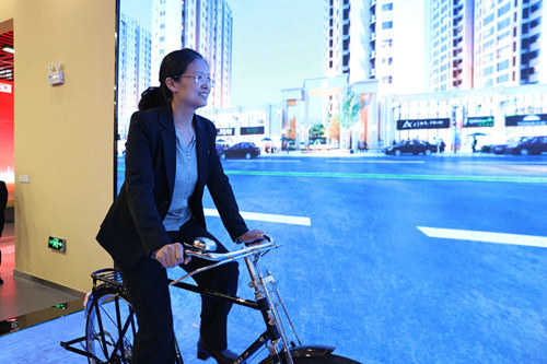 黨員張紅梅還騎上“二八”大杠自行車,體驗(yàn)穿越時(shí)空的感覺(jué)。隨著車輪轉(zhuǎn)動(dòng),自行車側(cè)面屏幕呈現(xiàn)出從戈壁荒漠到現(xiàn)代化兵團(tuán)城鎮(zhèn)的美景,她為兵團(tuán)取得的偉大成就感到特別驕傲和自豪。