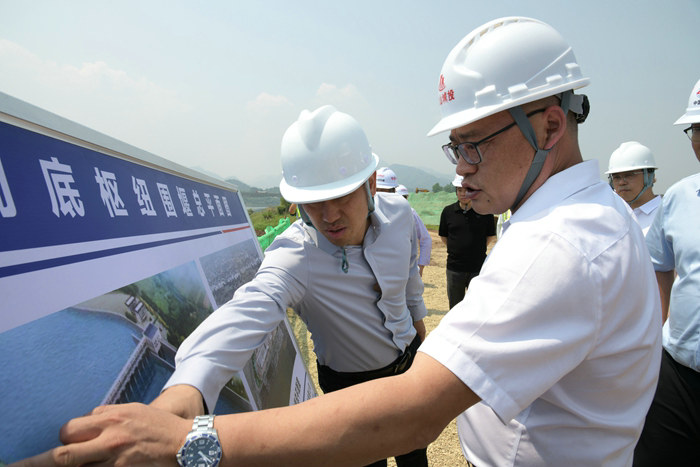 王永明仔細(xì)查看了閣底樞紐總體工程布置圖和形象進(jìn)度圖、施工中的電站現(xiàn)場、電站二期圍堰、架設(shè)完成的5孔橋梁和安裝完畢的4道泄洪閘門,碧綠的常山江水和兩岸綠的泛光的喬灌木,表示滿意。他說:投資、監(jiān)理單位都付出了很大努力,同時(shí)也見識(shí)了中鐵十五局的施工能力。根據(jù)了解的情況,王永明提出4點(diǎn)要求:一是今年雨水多于往年,定陽航運(yùn)投資集團(tuán)、監(jiān)理公司和中鐵十五局,要齊心合力防大汛,不能有絲毫麻痹,要確保汛期員工和財(cái)產(chǎn)安全。二是要建立晝夜巡查制度,領(lǐng)導(dǎo)帶班,特別是大雨、暴雨極端天氣和上游水庫放水,要保持高度警惕,哪個(gè)樞紐遇到險(xiǎn)情,要立即啟動(dòng)應(yīng)急預(yù)案,突擊隊(duì)和機(jī)械車輛快速到場搶險(xiǎn)。三是對管理、作業(yè)人員每周要進(jìn)行一次安全防范教育,對施工安全的認(rèn)識(shí)要到位,消除僥幸心理。四是安全防護(hù)措施要得力,中雨和大到暴雨天氣停止施工,人員和機(jī)械設(shè)備撤到安全地帶。