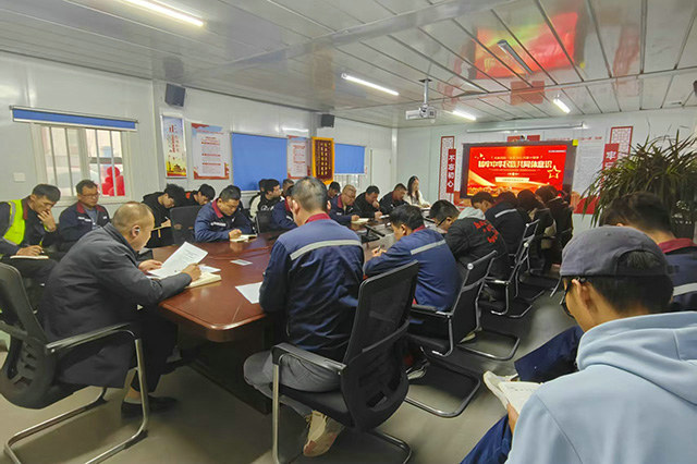 在專題學(xué)習(xí)環(huán)節(jié),劉壘壘書記帶領(lǐng)大家深入學(xué)習(xí)《習(xí)近平出席中央民族工作會議并發(fā)表重要講話》,剖析“四個(gè)與共”“五個(gè)認(rèn)同”。在南疆項(xiàng)目現(xiàn)場,各民族建設(shè)者深刻體會到,大家命運(yùn)相連,只有認(rèn)同偉大祖國、中華民族、中華文化、中國共產(chǎn)黨和中國特色社會主義,才能心往一處想、勁往一處使,推動(dòng)項(xiàng)目順利進(jìn)行。