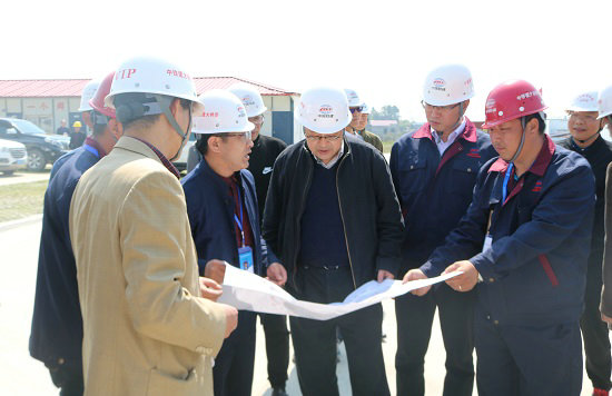 圖為檢查組在施工現(xiàn)場檢查指導(dǎo)