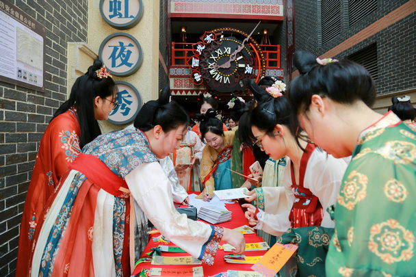 活動(dòng)以“弘揚(yáng)中華優(yōu)秀傳統(tǒng)文化”為主線,創(chuàng)新采用沉浸式古風(fēng)體驗(yàn)形式,將中原文化與現(xiàn)代交友需求深度融合?;顒?dòng)伊始,青年們身著精心設(shè)計(jì)的漢服,手持“通關(guān)文牒”,在“筆墨丹青墻”揮毫留名,體驗(yàn)古代文人雅士的禮儀風(fēng)范。通過(guò)“飛花令”隨機(jī)組隊(duì)環(huán)節(jié),青年們迅速打破陌生感,在才藝展示、趣味紅娘說(shuō)媒中增進(jìn)了解。一位參與活動(dòng)的青年員工表示:“這種形式既新穎又富有文化底蘊(yùn),讓我們?cè)谳p松的氛圍中自然交流,避免了傳統(tǒng)相親的尷尬。”