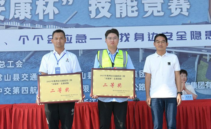 經(jīng)過(guò)專家組綜合評(píng)比,團(tuán)體一二三名和個(gè)人一二三名全部產(chǎn)生,二公司獲得團(tuán)體第二名。衢州市交通局、總工會(huì),常山縣有關(guān)領(lǐng)導(dǎo)參加。此次最大的亮點(diǎn)是懸掛、張貼在現(xiàn)場(chǎng)的各種安全宣傳牌和安全標(biāo)語(yǔ)、工程展示牌,并且15個(gè)參賽小組選手頭上戴的安全帽和身上穿著的反光背心,均印有“中國(guó)鐵建標(biāo)志”和“中鐵十五局”字樣,彰顯了企業(yè)的籌備能力和深邃的企業(yè)文化與良好的企業(yè)形象。