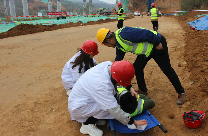 演練中醫(yī)護(hù)人員救援傷員 隨后,監(jiān)理單位負(fù)責(zé)人就本次演練內(nèi)容及過程給予了點(diǎn)評(píng),“質(zhì)量月”活動(dòng)啟動(dòng)已有半月,目前施工節(jié)奏緊張,現(xiàn)場加班加點(diǎn)往前沖,安全工作絕對(duì)不能忽視,進(jìn)入施工現(xiàn)場,就要對(duì)自己負(fù)責(zé)。要像在演練時(shí)一樣提高警惕、加強(qiáng)安全管理,將事故風(fēng)險(xiǎn)降到最低。