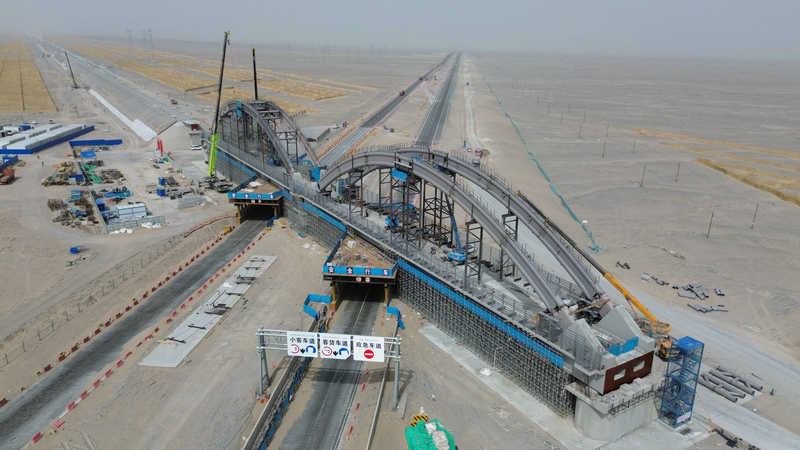 羅若鐵路位于塔克拉瑪干沙漠邊緣,氣候條件惡劣,夏季酷熱,春秋季風(fēng)沙肆虐,地質(zhì)條件復(fù)雜多變。為應(yīng)對(duì)這些挑戰(zhàn),項(xiàng)目團(tuán)隊(duì)采取錯(cuò)峰施工策略,避開(kāi)中午高溫時(shí)段,利用夜間進(jìn)行作業(yè),同時(shí)配備防暑降溫藥品,并開(kāi)展防暑救援知識(shí)培訓(xùn)。針對(duì)風(fēng)沙天氣,提前制定應(yīng)急預(yù)案,強(qiáng)化風(fēng)險(xiǎn)防范與應(yīng)急處置措施,在風(fēng)沙過(guò)后迅速組織人員清理現(xiàn)場(chǎng)、恢復(fù)施工。目前,該標(biāo)段控制性工程已全部完工,累計(jì)交付路基64公里,為全線貫通奠定了堅(jiān)實(shí)基礎(chǔ)。