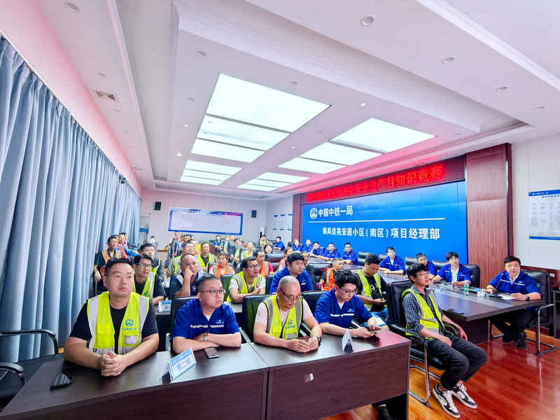 6月25日晚,中鐵一局秦風佳苑項目部燈火通明,隨著《開路先鋒》的旋律,一場緊張激烈的安全生產(chǎn)知識競賽正式拉開序幕。本次活動緊扣“人人講安全、個個會應(yīng)急——查找身邊安全隱患”主題,旨在深化第24個全國“安全生產(chǎn)月”活動實效,通過寓教于賽的形式,推動項目全員樹牢安全發(fā)展理念,增強安全生產(chǎn)意識。