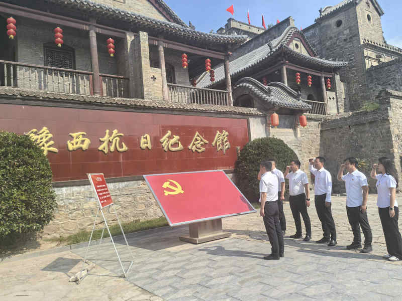 活動(dòng)當(dāng)日,在豫西抗日紀(jì)念館廣場(chǎng),項(xiàng)目黨員干部面向黨旗莊嚴(yán)宣誓,鏗鏘有力的入黨誓詞在廣場(chǎng)上久久回蕩,黨員們的初心與信仰再次得到洗禮。隨后,在講解員引導(dǎo)下,黨員們深入?yún)⒂^館內(nèi)展陳。歷史照片、革命文物與藝術(shù)繪畫,生動(dòng)再現(xiàn)了豫西軍民在黨的領(lǐng)導(dǎo)下創(chuàng)建抗日根據(jù)地、浴血奮戰(zhàn)的壯闊歷程。磨損的軍號(hào)、帶補(bǔ)丁的軍裝等實(shí)物,無(wú)聲訴說(shuō)著革命年代的艱苦奮斗,給參觀者留下深刻印象。