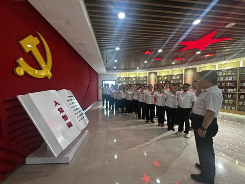 活動首先在承載紅色記憶的圖書館“紅書房”開啟,全體黨員握舉右拳重溫入黨誓詞:“我志愿加入中國共產(chǎn)黨……”,鏗鏘有力的誓詞,表達(dá)了對黨的忠誠和為共產(chǎn)主義事業(yè)奮斗終身的堅(jiān)定信念。