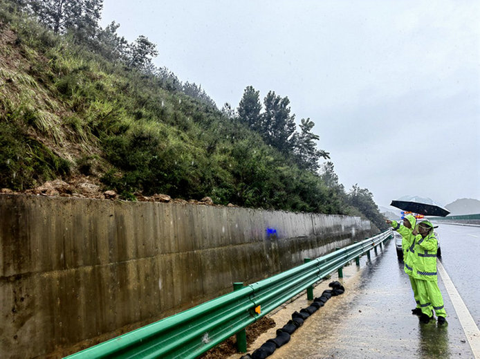 依托各收費(fèi)站、服務(wù)區(qū)、停車區(qū),組織一線人員對站區(qū)周邊開展隱患排查,確保自身安全和臨時(shí)停駐旅客安全。路巡隊(duì)加大巡查密度,確保道路上出現(xiàn)任何情況都能第一時(shí)間發(fā)現(xiàn),迅速采取應(yīng)對措施。公司領(lǐng)導(dǎo)帶領(lǐng)安全環(huán)保部對全線進(jìn)行巡查,突出邊坡、橋梁和隧道出入口等易發(fā)生泥石流、滑坡、塌方的高風(fēng)險(xiǎn)部位,現(xiàn)場進(jìn)行風(fēng)險(xiǎn)評估、組織處治工作。