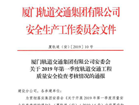 ?。◤B門訊)4月12日, 廈門軌道交通集團有限公司通報了2019年第一季度軌道交通工程質(zhì)量安全檢查考核情況結(jié)果,中鐵一局建安公司廈門地鐵2號線安裝裝修二標項目部以95.55分的成績在全線車站設(shè)備施工單位中名列第一。這是項目部繼獲得2018年四季度質(zhì)量安全考評第一后再次奪得季度評比第一。 中鐵一局建安公司擔負著廈門地鐵2號線馬鑾中心站、新陽大道站、長庚醫(yī)院站、翁角路站及相鄰區(qū)間的機電設(shè)備安裝及砌筑裝修施工任務(wù)。 在2019年一季度的工作中,項目部堅持安全第一,質(zhì)量為先的工作思路,緊密圍繞廈門軌道集團建設(shè)要求,認真落實企業(yè)各項安全管理制度,全面履行安全質(zhì)量主體責任,不斷強化現(xiàn)場安全質(zhì)量管控。項目部配齊配全了安全防護設(shè)施,制定了重大危險源清單和應(yīng)急預(yù)案,定期開展安全質(zhì)量大檢查,及時組織安全生產(chǎn)專項檢查,扎實開展消防應(yīng)急演練,并結(jié)合工序轉(zhuǎn)換對參建人員進行安全質(zhì)量動態(tài)培訓(xùn),結(jié)合春節(jié)前后的安全生產(chǎn)形勢組織專項培訓(xùn),進而實現(xiàn)了安全質(zhì)量管理的全過程管理,全方位覆蓋。同時,項目部還通過運用BIM技術(shù),實施樣板引路、優(yōu)化施工方案等方式推動現(xiàn)場安全質(zhì)量管理水平提升。完善的措施,有力的執(zhí)行,使項目部在質(zhì)量安全管理方面走在了全線各參建單位的前列,也贏得了業(yè)主的贊譽和肯定。 此次項目部在業(yè)主質(zhì)量安全考核中蟬聯(lián)全線第一,體現(xiàn)了廈門軌道集團對項目安全質(zhì)量管理水平的認可,彰顯了建安公司機電設(shè)備安裝施工專業(yè)優(yōu)勢,為企業(yè)在廈門進行市場開拓創(chuàng)造了積極條件。