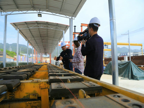 當(dāng)天上午,記者一行首先來到了項(xiàng)目部鋪架基地生產(chǎn)區(qū)。在現(xiàn)場,記者們先后詢問了鋪軌釘聯(lián)生產(chǎn)流程、長軌鋪設(shè)施工工藝、500米長軌存放及施工工器具種類等系列問題。項(xiàng)目部常務(wù)副經(jīng)理劉超紅對記者們所提出的問題進(jìn)行了一一解答。隨后,記者們對項(xiàng)目部各生產(chǎn)功能性區(qū)域進(jìn)行了拍攝。