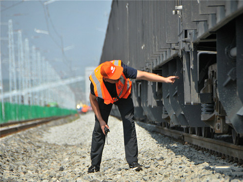 烈日當(dāng)空,鋼軌間蒸騰起一片灼人的熱浪。內(nèi)蒙古地區(qū)近日地表溫度逐步攀升,鋼軌上蒸騰的熱氣扭曲了空氣,眼前景物似在水中晃動(dòng)。