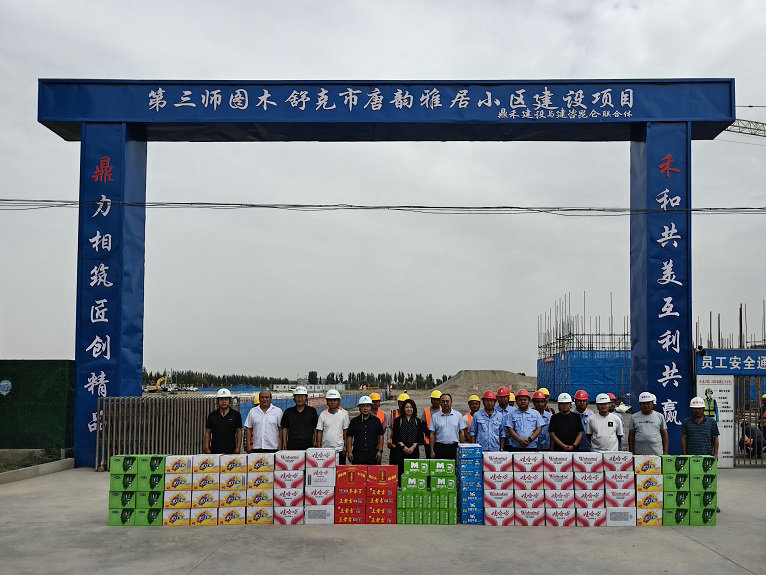 圖木舒克訊(通訊員 合畏臣)7月24日,第三師圖木舒克市總工會走進新疆建咨昆侖工程建設(shè)有限責(zé)任公司第二工程公司承建的唐韻雅居項目施工現(xiàn)場,開展“夏日送清涼”慰問活動,為高溫下堅守崗位的一線職工送去關(guān)懷,并現(xiàn)場指導(dǎo)夏季安全生產(chǎn)工作。