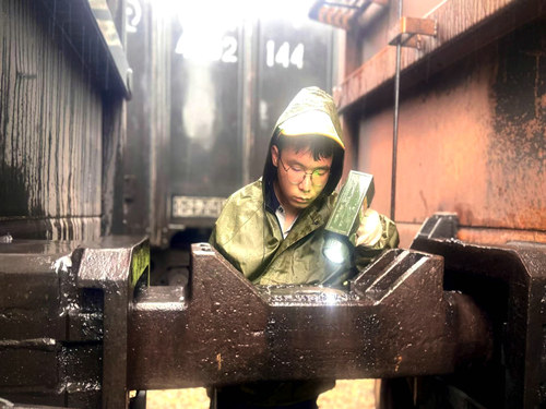 “雨天作業(yè)更要細(xì)心,雨水容易掩蓋故障痕跡,比如閘瓦磨耗、車(chē)鉤裂紋等問(wèn)題,必須進(jìn)行反復(fù)確認(rèn)。”列檢工長(zhǎng)程奎抹了把臉上的雨水,聲音洪亮地提醒著同事。盡管雨水順著帽檐流下,他們的目光卻始終專(zhuān)注,手中的檢車(chē)錘敲擊聲與雨聲交織,奏響了一曲安全守護(hù)的樂(lè)章。