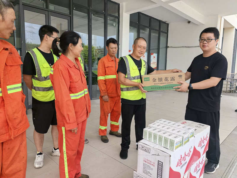 活動現場,公司管理人員與養(yǎng)護單位管理人員、一線養(yǎng)護工人親切交流,詳細詢問工作、生活情況,對他們不懼高溫、堅守崗位的奉獻精神表示感謝,并反復叮囑大家要增強自我保護意識,科學防暑降溫,確保工作安全。并結合高溫作業(yè)實際,精心準備了藿香正氣水、礦泉水、金銀花露和清甜西瓜等防暑降溫物品,確保養(yǎng)護工人及時補充水分、緩解暑熱。同時,叮囑養(yǎng)護單位現場管理人員在高溫天氣提供綠豆湯,清香沁人,嚴格落實高溫作業(yè)安全措施確保員工身體健康與生產安全“兩不誤”。
