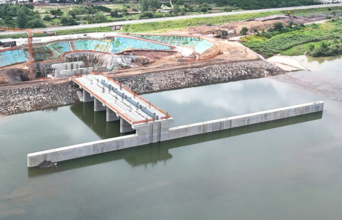 然而,項目建設(shè)面臨的挑戰(zhàn)遠超預(yù)期。每年3個月的汛期與頻繁的臺風侵襲,讓河道內(nèi)的導(dǎo)流墻、泄洪閘(含閘墩、鋪蓋、護坦、消力池、閘門、閘房)等關(guān)鍵部位的有效施工時間被壓縮至不足7個月。加之電站工藝復(fù)雜、施工質(zhì)量要求嚴苛,使項目不僅要應(yīng)對高強度的工期壓力,還要克服技術(shù)難題與安全風險的雙重考驗。
