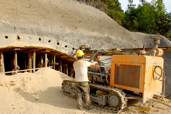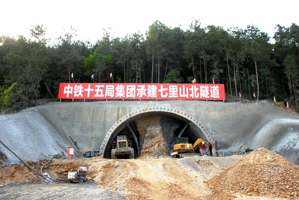 該隧道全長251米,是修水境內(nèi)9.188公里國道擴(kuò)建項(xiàng)目唯一的隧道,地質(zhì)為煤矸石,施工中易發(fā)生塌方。2月28日開工后,采取清表、挖掘機(jī)、鏟車、翻斗車等機(jī)械設(shè)備合力進(jìn)行前期土石方攻堅(jiān),并制定了可行性較強(qiáng)的施工預(yù)案。同時(shí)調(diào)集空壓機(jī)、噴錨機(jī)等設(shè)備為進(jìn)洞施工創(chuàng)造條件。4月13日,進(jìn)口端在完成明洞開挖、剛拱架作業(yè)、鋼筋混凝土施工等程序后,順利進(jìn)入下一道洞內(nèi)掘進(jìn)