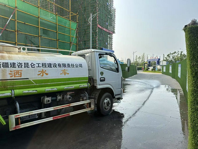 走進(jìn)項(xiàng)目施工現(xiàn)場(chǎng),“六化”標(biāo)準(zhǔn)的落地成效清晰可見:3米高的硬質(zhì)圍擋連續(xù)閉合,頂部噴淋系統(tǒng)定時(shí)啟動(dòng)形成白色霧障;裸土與建筑材料被密目防塵網(wǎng)全面覆蓋,如同為場(chǎng)地披上綠色外衣;混凝土硬化的施工道路平坦整潔,車輛駛過不見揚(yáng)塵;出入口的自動(dòng)化洗車槽內(nèi),高壓水槍正對(duì)駛離車輛進(jìn)行全方位沖洗,確保“凈身出戶”;塔吊噴淋、移動(dòng)霧炮車與周邊噴淋裝置組成立體降塵網(wǎng)絡(luò),可根據(jù) PM2.5 數(shù)據(jù)智能啟停;建筑垃圾分類存放于密閉容器,由專用車輛每日清運(yùn)。