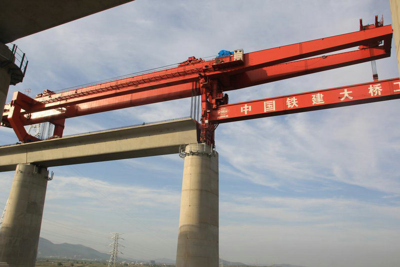 新建巢馬城際鐵路先行段箱梁預(yù)制、梁架設(shè)共計56孔,全部由中鐵建大橋局商合杭鐵路站前十四標(biāo)二分部含山制梁場負(fù)責(zé)施工,歷時36天,最終成功完成全部箱梁架設(shè)。