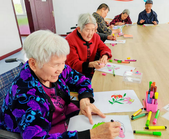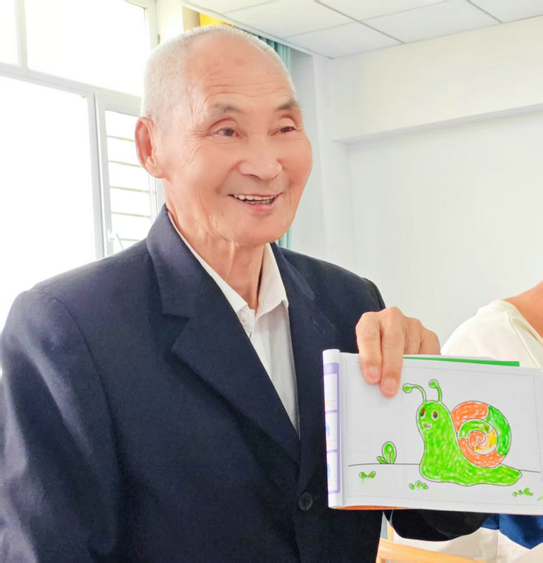 走進手工美術(shù)室,六師奇臺110社區(qū)吾家樂寶養(yǎng)老院自理、半自理老人,興趣極濃,興致高漲,在院長史云智與護理員們的輔導(dǎo)下,早早地來到手工美術(shù)室,用彩筆涂染著一幅幅卡通畫片,用自己“好的心情”與“不老之心”描繪著自己童年的記憶。六師奇臺110社區(qū)吾家樂寶養(yǎng)老院,為了增強在院長者健康活力,每周結(jié)合長者們健康實際,制定出長者益智活動方案,組織在院老人積極參與,共同開展豐富多彩、老人喜聞樂見的各項活動。在開展“七彩繪畫”課堂活動中,該養(yǎng)老院的自理、辦自理老人們,用彩筆繪畫出栩栩如生的圖畫,臉上流溢出幸福甜蜜笑容。