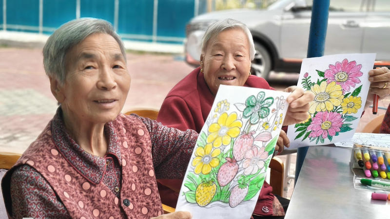 吾家樂(lè)寶養(yǎng)老副院長(zhǎng)焦紅霞介紹,開設(shè)戶外涂色課,是希望老人們?cè)谟H近自然的同時(shí),通過(guò)色彩表達(dá)心情,鍛煉手部靈活度,更能在互動(dòng)中找回童趣。“看著他們像孩子一樣認(rèn)真,又笑著分享彼此的作品,就知道這堂課開對(duì)了。”