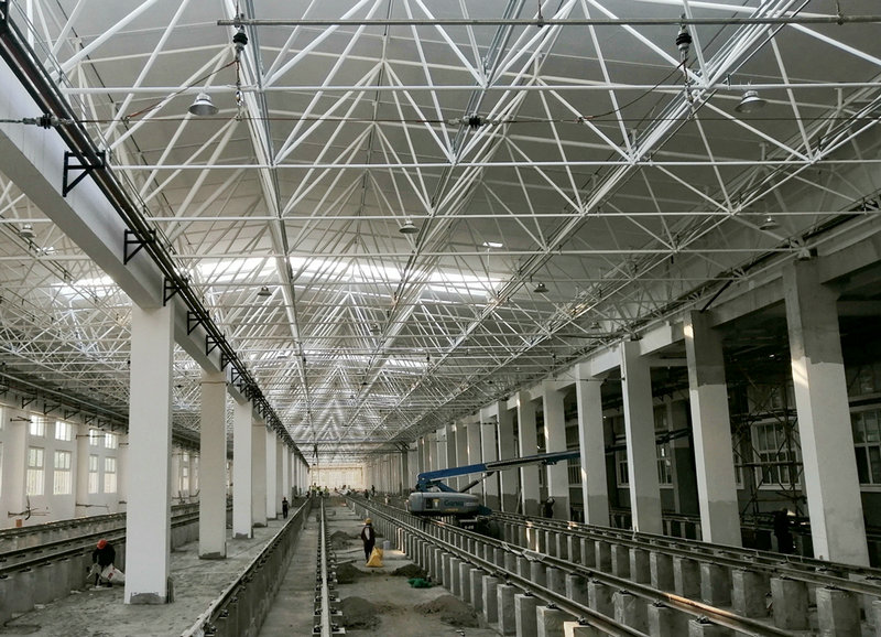 中鐵一局建安公司西安地鐵一號(hào)線二期改擴(kuò)建工程項(xiàng)目,主要負(fù)責(zé)西咸車輛基地和灞河停車場(chǎng)改擴(kuò)建施工,主要施工任務(wù)為在西咸車輛段既有停車列檢庫(kù)南側(cè)貼建3跨6線停車列檢庫(kù),在灞河停車場(chǎng)既有停車列檢庫(kù)北側(cè)貼建1跨2線周月檢庫(kù)。
