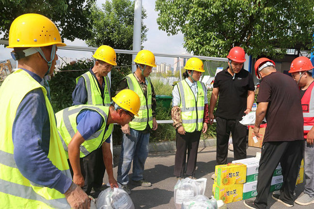 在物資保障方面,建立“防暑物資清單化管理”機制,采購清涼油、風(fēng)油精、藿香正氣水等應(yīng)急藥品,向一線班組發(fā)放金銀花露、礦泉水、綠豆等解暑食品。確保“清涼物資”直達作業(yè)面、覆蓋每一位職工,切實將組織關(guān)懷轉(zhuǎn)化為抵御酷暑的“保障”。而在機制創(chuàng)新層面,武夷新區(qū)金融/商務(wù)CBD市政項目推行彈性工作制,通過調(diào)整作業(yè)時序避開正午高溫時段。項目現(xiàn)場裝有智能溫控監(jiān)測系統(tǒng),當現(xiàn)場氣溫超過35℃時管理人員立即組織輪崗休息,實現(xiàn)“人機協(xié)同”科學(xué)防暑,有效破解“保進度”與“護健康”的矛盾,施工效率有效提升,中暑事件實現(xiàn)“零發(fā)生”。
