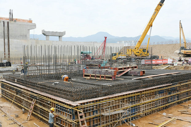 目前招賢樞紐泄洪閘二期、閘首橋、電站主廠房和出水口遍地開花,各種機(jī)械的馬達(dá)聲轟鳴聲響徹整個(gè)工地,預(yù)計(jì)春節(jié)前完成泄洪閘9個(gè)閘墩、鋪蓋、護(hù)坦、消力池、閘首橋墩身和架梁任務(wù)。