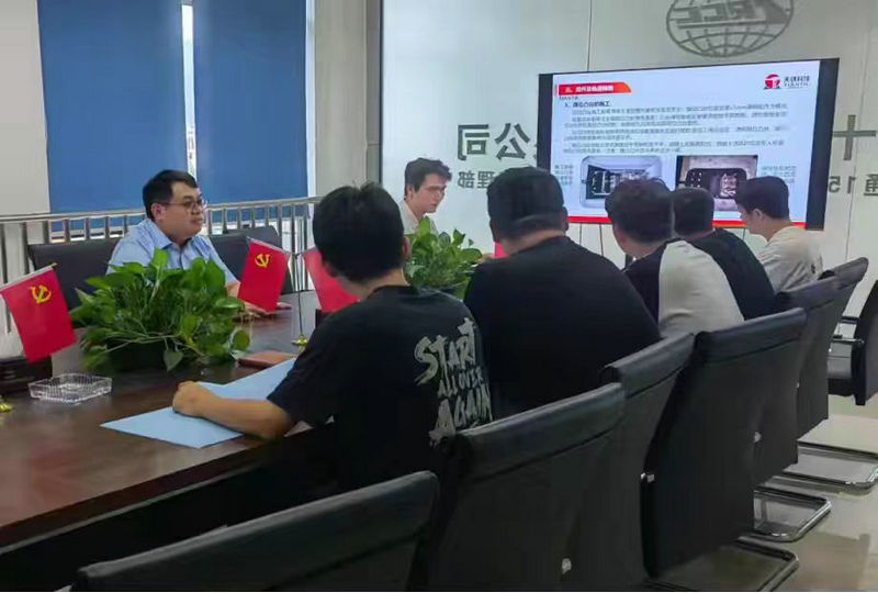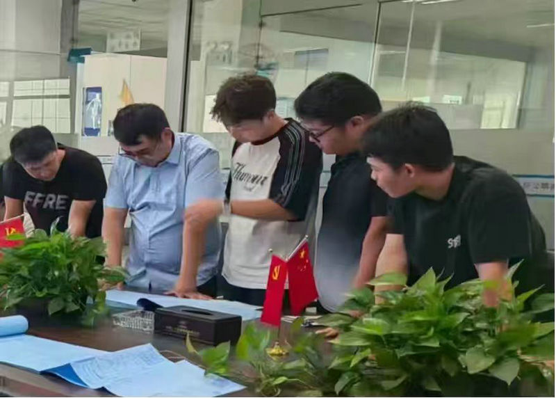 項(xiàng)目總工程師葛賦(左1)與技術(shù)團(tuán)隊(duì)在研究創(chuàng)新技術(shù)方案