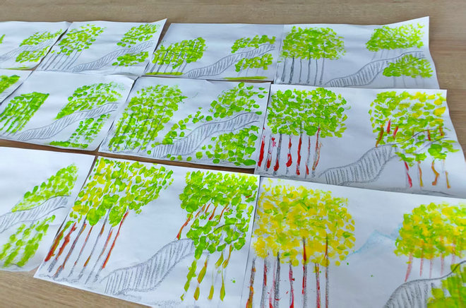 圖4為:六師奇臺110社區(qū)吾家樂寶養(yǎng)老院的長者們,以“繪彩金秋”為選題的美術(shù)作品各具“不同秋色”。