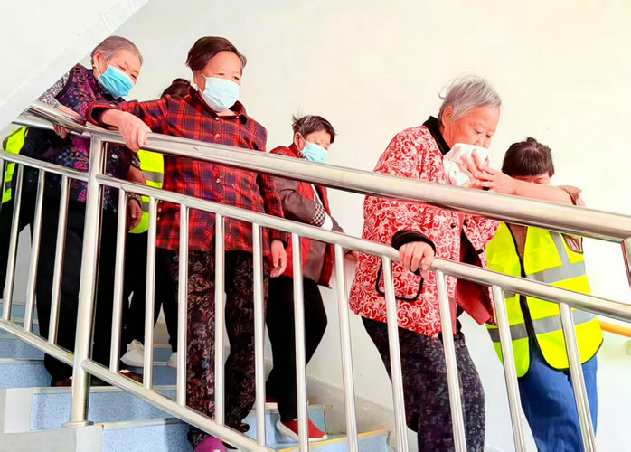 圖3為:在“雙節(jié)”逃生應(yīng)急演練中,該院應(yīng)急疏散組成員、護理員,正在按照消防火災(zāi)逃生預(yù)案,有序地組織長者撤離到安全地點。
