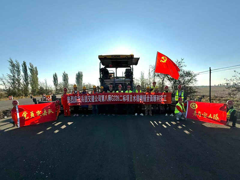 石河子訊(通訊員 李宇通 穆鴻宇)近日,伴隨著最后一車水穩(wěn)混合料在隆隆的碾壓聲中成型,兵團(tuán)交建公司第八師G335二標(biāo)項(xiàng)目的水穩(wěn)層攤鋪任務(wù)圓滿收官。