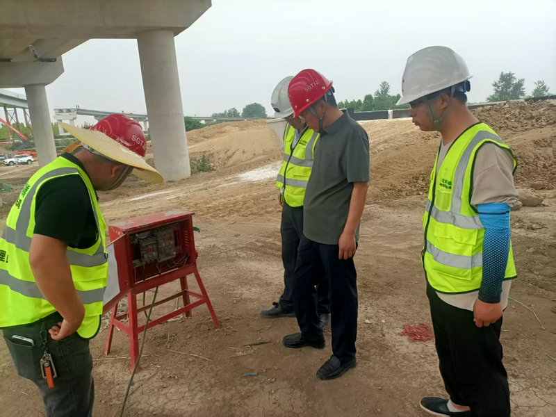 由項目負(fù)責(zé)人、專職安全員、技術(shù)員、專職電工組成檢查小組,開展臨時用電和機械設(shè)備專項檢查,重點對施工現(xiàn)場配電箱、用電設(shè)備、起重機、混凝土運輸車輛等設(shè)施和大型機械設(shè)備進(jìn)行全面排查。主要查看配電箱是否按規(guī)定設(shè)置門鎖、防雨措施是否到位、漏電保護(hù)器是否靈敏可靠;檢查電線電纜是否存在破損、老化、私拉亂接現(xiàn)象;接地接零是否規(guī)范;檢查機械設(shè)備運行狀況、安全防護(hù)裝置是否完好有效、操作人員是否持證上崗及遵守操作規(guī)程等。對于檢查出的問題,當(dāng)場下達(dá)整改通知書,明確整改責(zé)任人與期限,確保臨時用電安全、機械設(shè)備運行狀態(tài)良好,為項目建設(shè)提供有力保障。